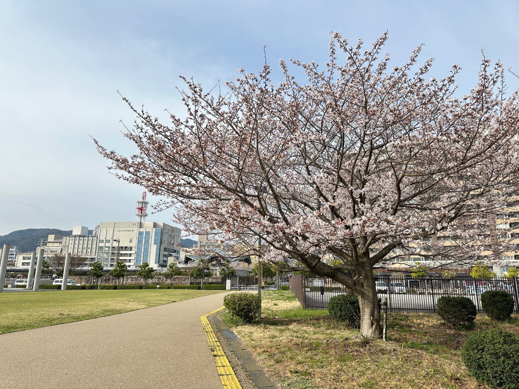 こちら大津港マリーナ前の桜も満開となりました。